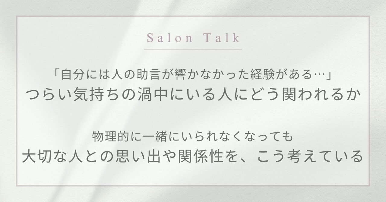『介護と施設入居に関する葛藤/決断したものの、相反する感情を抱えているとき/アドバイスを受け入れられないとき/ドラマ「僕の生きる道」の視聴体験 など』サロントーク2025.11①(約5684文字)【読了時間目安:30分】 このコンテンツを閲覧するにはログインが必要です。お願い Log In. あなたは会員ですか ? 会員について Post date 2025年11月13日 Posted in 書き起こしまとめ Previous post: [Self-Question] 2025.11.8 #コミュニケーションパターンを整える1ヶ月② Next post: [Self-Question] 2025.11.15 #コミュニケーションパターンを整える1ヶ月③ コメントを投稿するにはログインしてください。